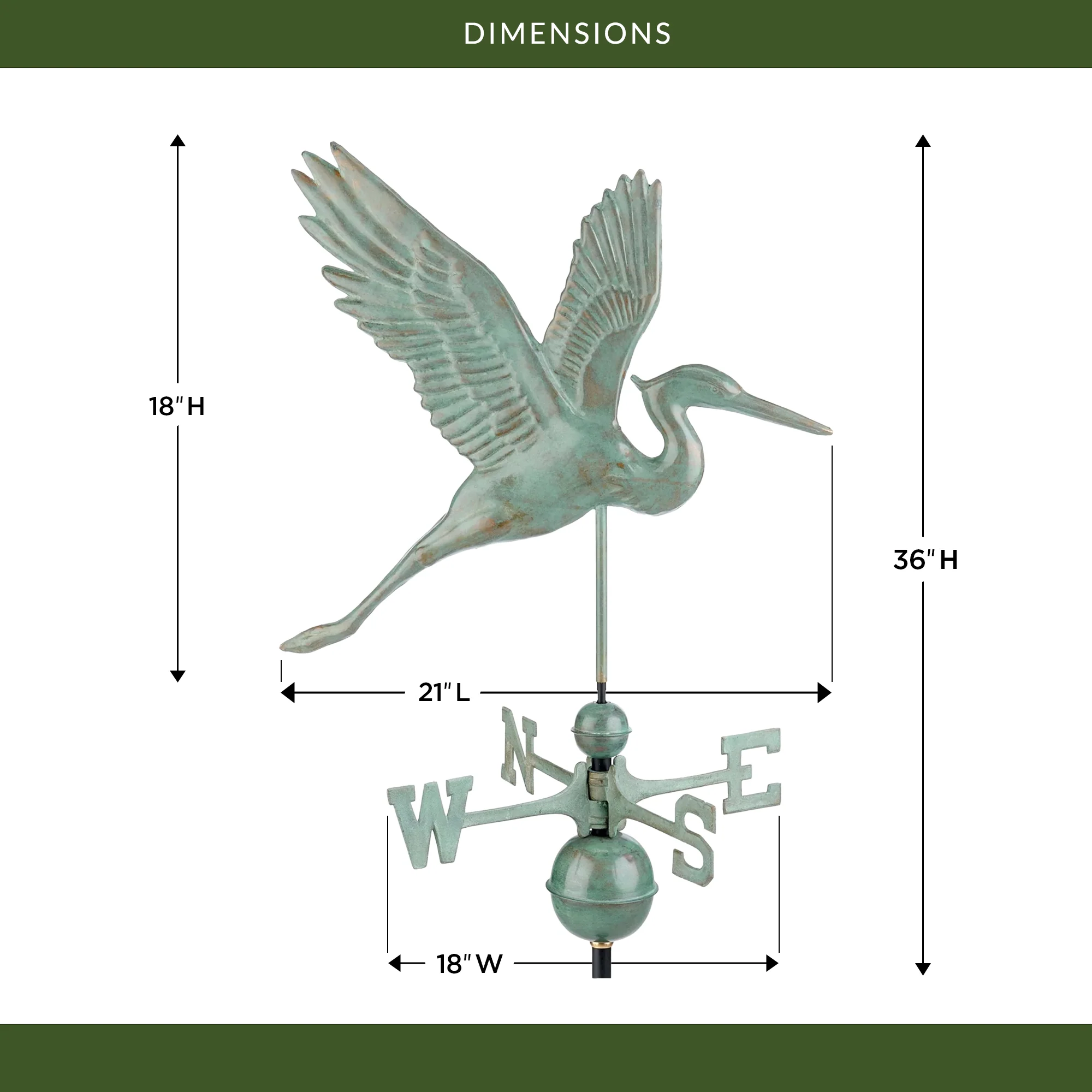 Add a touch of majestic beauty to your outdoor space with our Graceful Blue Heron Weathervane! This stunning product is crafted from pure copper and perched atop a brass rod, making it durable and beautiful. The intricate details of the long neck, slim body, sharp beak, and outstretched wings give it an almost regal air. Watch as the wind dances with our beautiful Blue Heron, bringing a touch of magic to your garden or lawn.