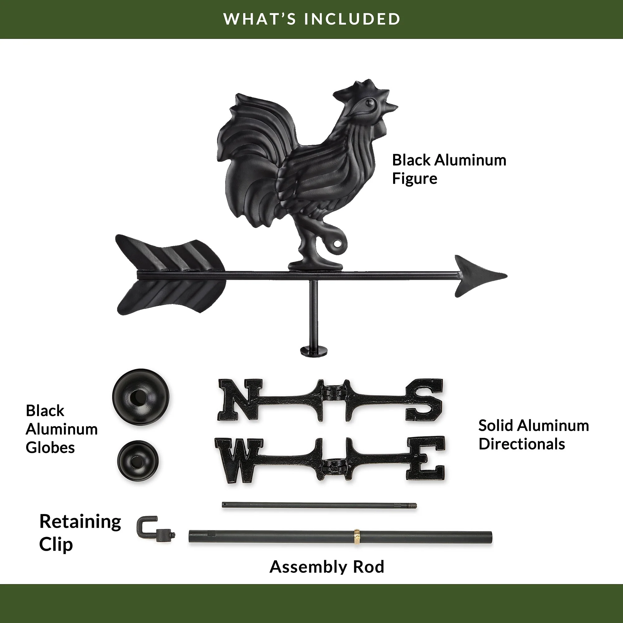 With chest and tail feathers proudly puffed out, this rooster is ready to adorn the rooftop of smaller structures, sheds, and gazebos. Since 1982 Good Directions weathervanes have been unsurpassed in style, quality, and durability “ perfect for the house-proud homeowner. Bring The Joy of Outdoor Living℠ to your home with this heirloom-quality piece.