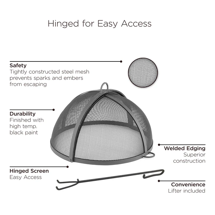 | The intricately woven powder-coated steel mesh spark screen offers an added layer of protection to any outdoor fire pit blaze! Use the included spark screen lifter to easily slide the screen open and closed. |
